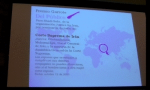 به گزارش عدالت برای ایران، سرانجام شب گذشته، ۲ ژوئن ۲۰۱۱ (۱۲ خرداد)، هیات داوران جایزه عدالت جنسیتی بی دفاع (Gender Justice Uncovered Awards) طی مراسمی در سالن آتنئوی مادرید، که بیش از ۴۰۰ نفر از نمایندگان جامعه مدنی و مطبوعات اسپانیا و تعدادی مهمان بین المللی در آن شرکت داشتند، محسنی اژه ای را برنده امسال جایزه بین المللی چماق اعلام کرد.